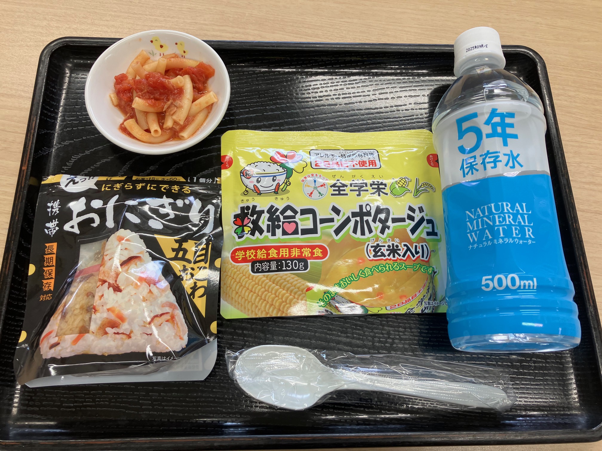 保育園では、毎年防災週間に防災意識を高めるために給食で『災害時備蓄品』を食べています。