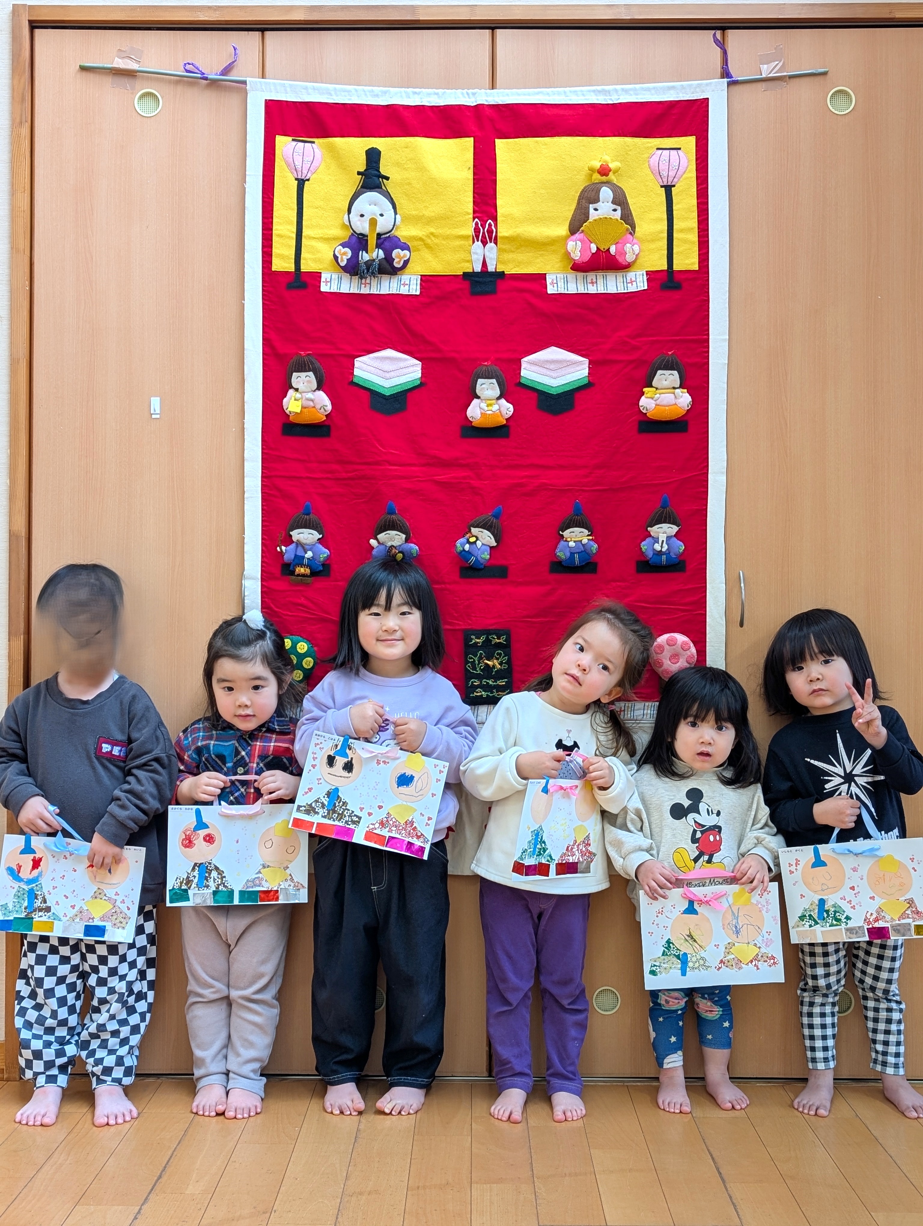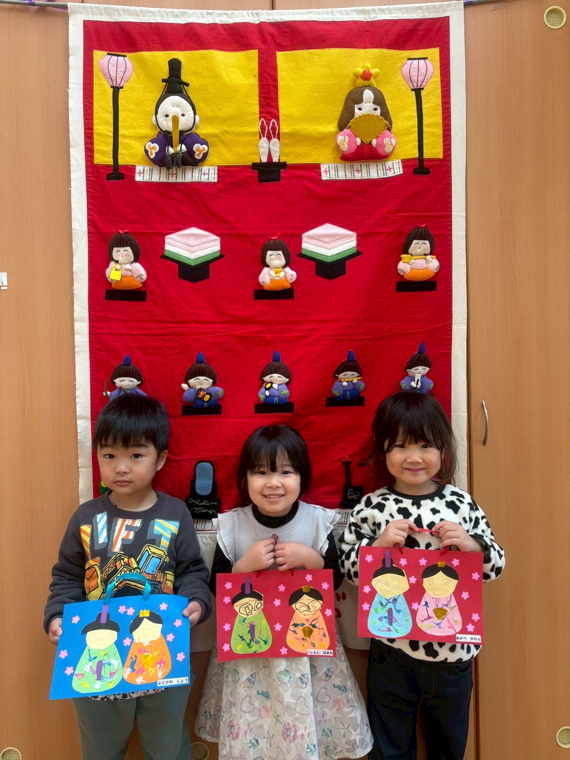 ひな祭りの意味を学習し、今日まで健康に育ってれたことにの感謝し、これからも早寝・早起き・朝ごはんを実行し自分で健康管理をしていくお約束をしました。 更に、ひな人形を一人ひとり確認しながら慣れべました。三人官女や五人囃子な配列は、毎年飾っていても難しいですね。 子ども達が、ひな人形の制作をしました。それぞれ表情豊かな可愛らしいひな人形が完成。是非、お家に飾つてください。 ※ ブログに入力できない写真があり、園児写真を全員分載せることができませんでした。申し訳ございません。当ホームページの写真販売には当日出席者の写真を掲載しています。そちらをご覧ください。 |