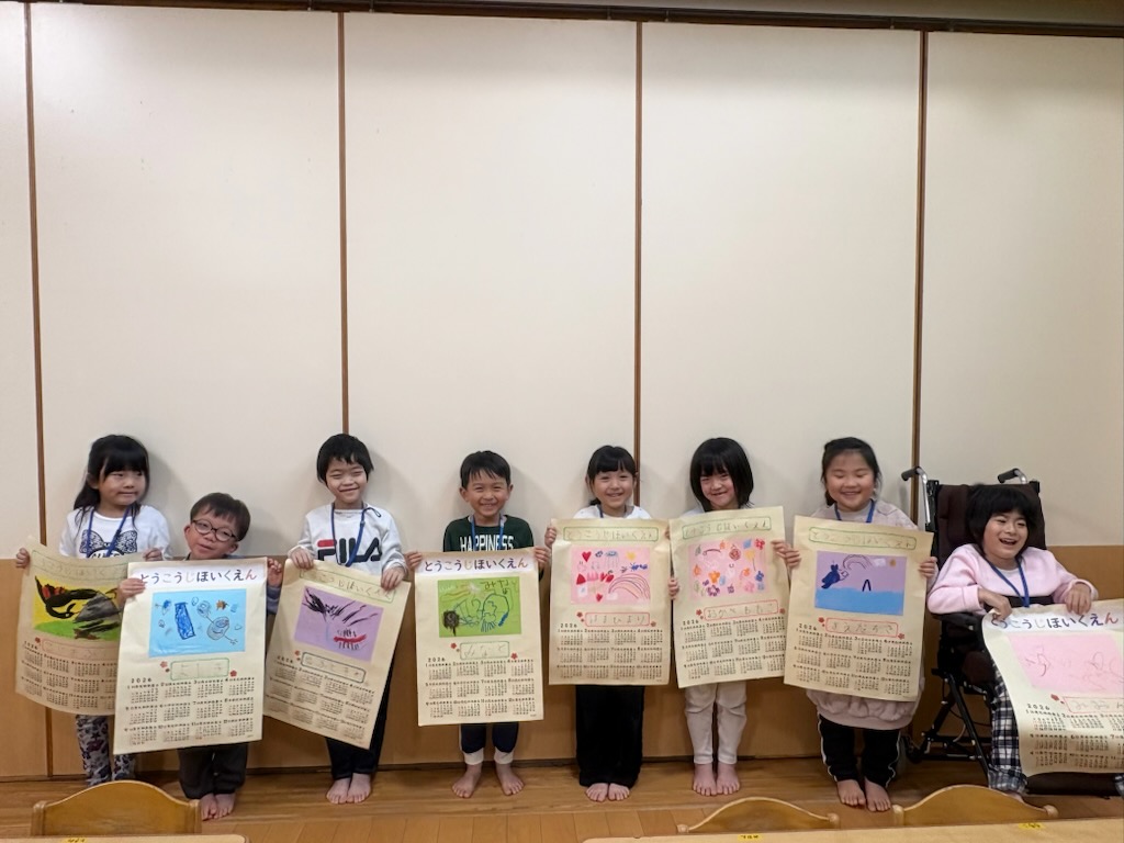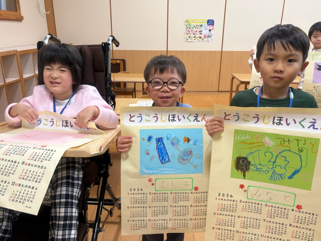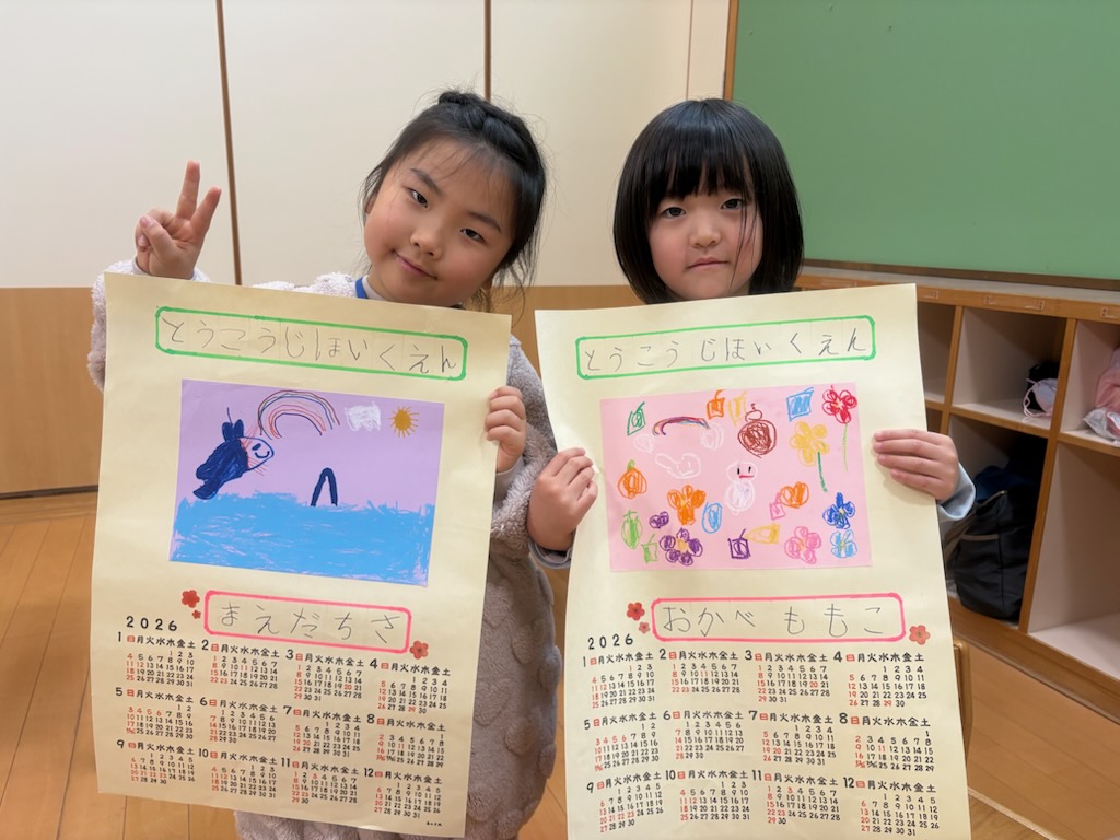 | 12月25日(木)『ひらがなで自分の名前を書こう!』の時間に、講師の坂口公子先生指導の下、2026年度のカレンダーを作成しました。