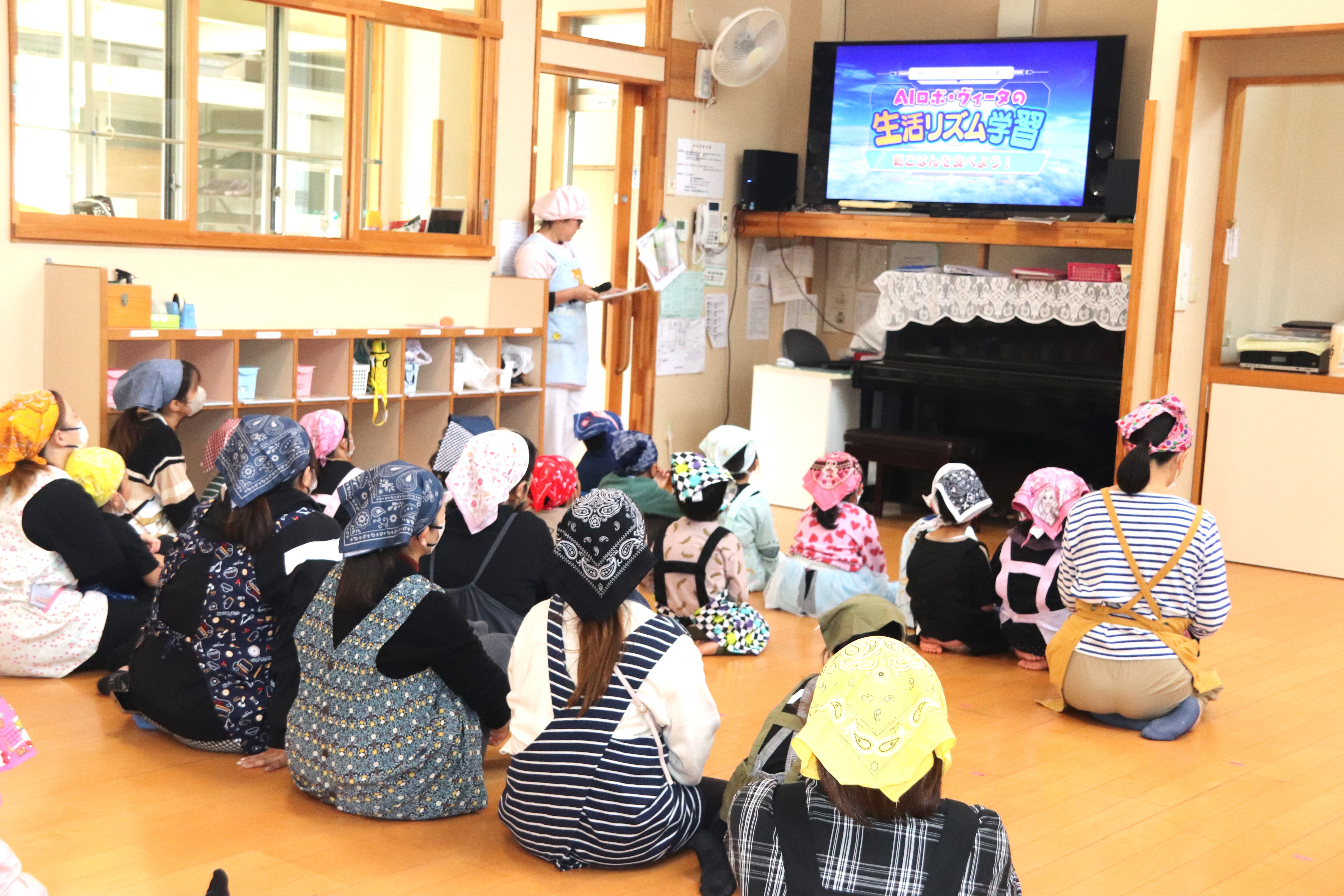 | 7月13日(土)に夕涼み会を開催しました。あいにくの雨で室内のみの活動でしたが、踊って、歌って、遊んで、食べて、家族やお友だち、地域の皆様と楽しい時間を過ごしました。 盆踊りは、3曲。子ども達は、輪を描きながら踊ることが難しく |