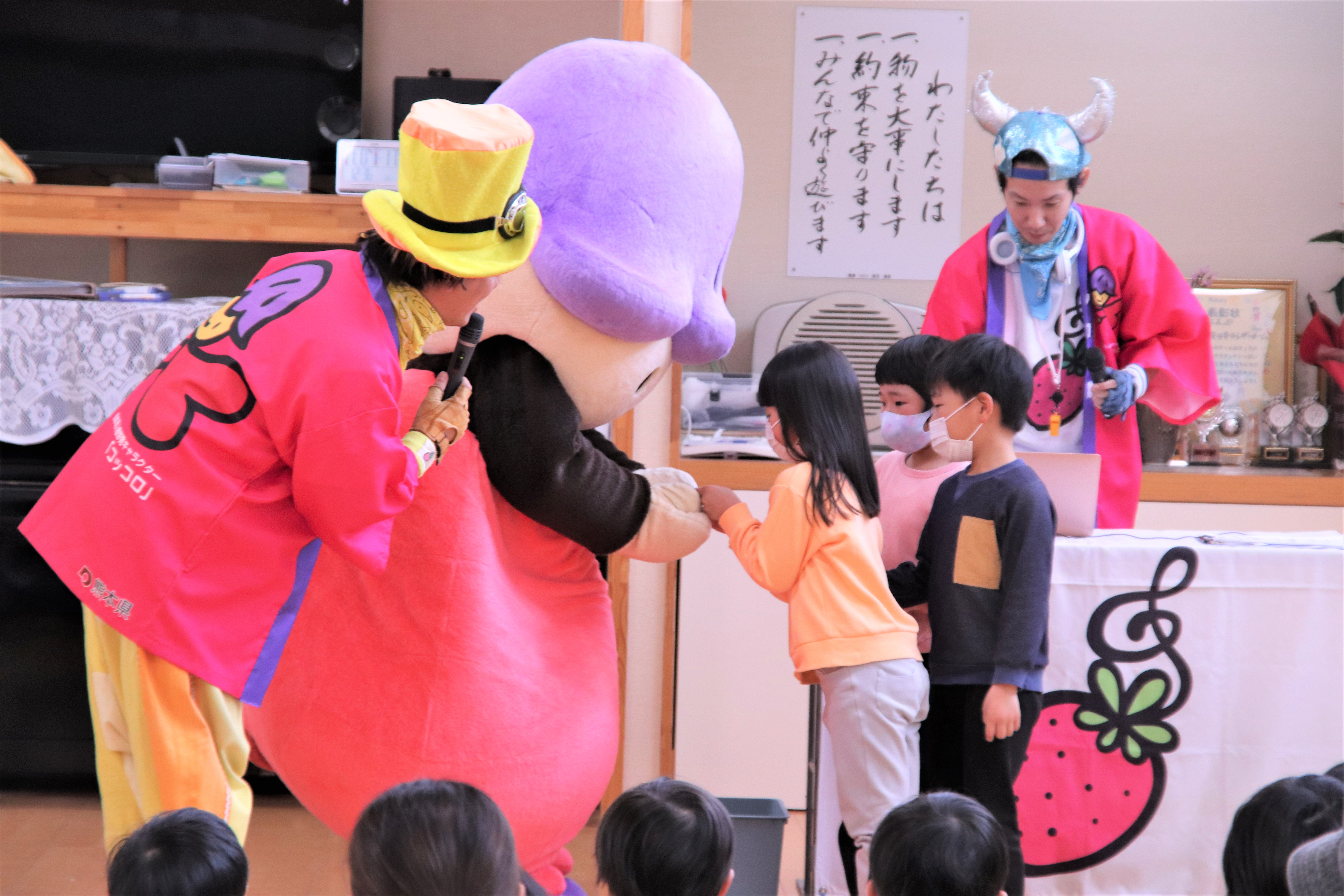 | 11月23日(祝)本町のふるさと祭りに『はしご乗り演技発表』で4・5歳児さんが参加をしました。 コロナ禍で地域の皆様の前で演技発表するのは初めての子ども達…緊張するかと案じておりましたがいらぬ心配でした。会場の皆様から、大人の背丈より高い梯子の上で堂々と演技する子ども達の姿に感銘と拍手をいただきました。 おかげさまで、子ども達は達成感を持てたようです。感謝申し上げます。 もう一つ嬉しかったことは、久々にふるさと祭りではしご乗り演技発表がされたので、卒園児さん達が駆けつけてくれたことです。皆、立派に成長して目を見張りましたが、どこかに保育園時代の面影もあり、可愛かったです!! |