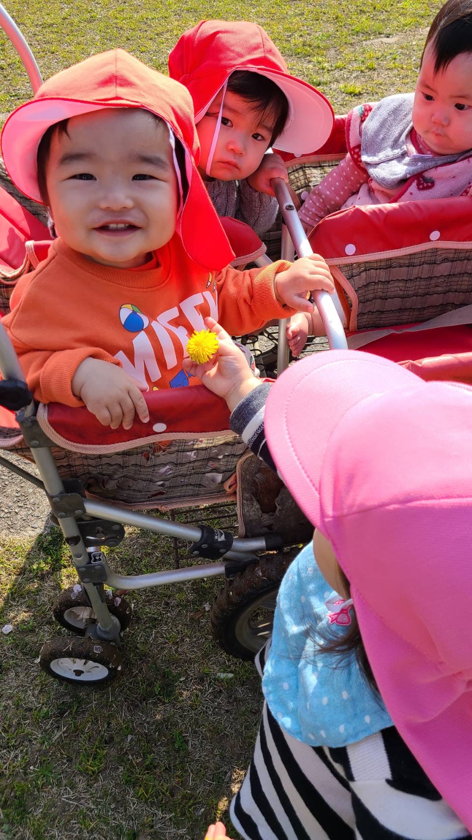 | 11月15日(水)七五三のお祝いで東向寺にお参りに行きました。本堂の前で自分の作った千歳飴袋を持って記念撮影。3歳未満児さんの写真撮影はいつもてんてこ舞い…今回は、奇跡の一枚があったかな? |