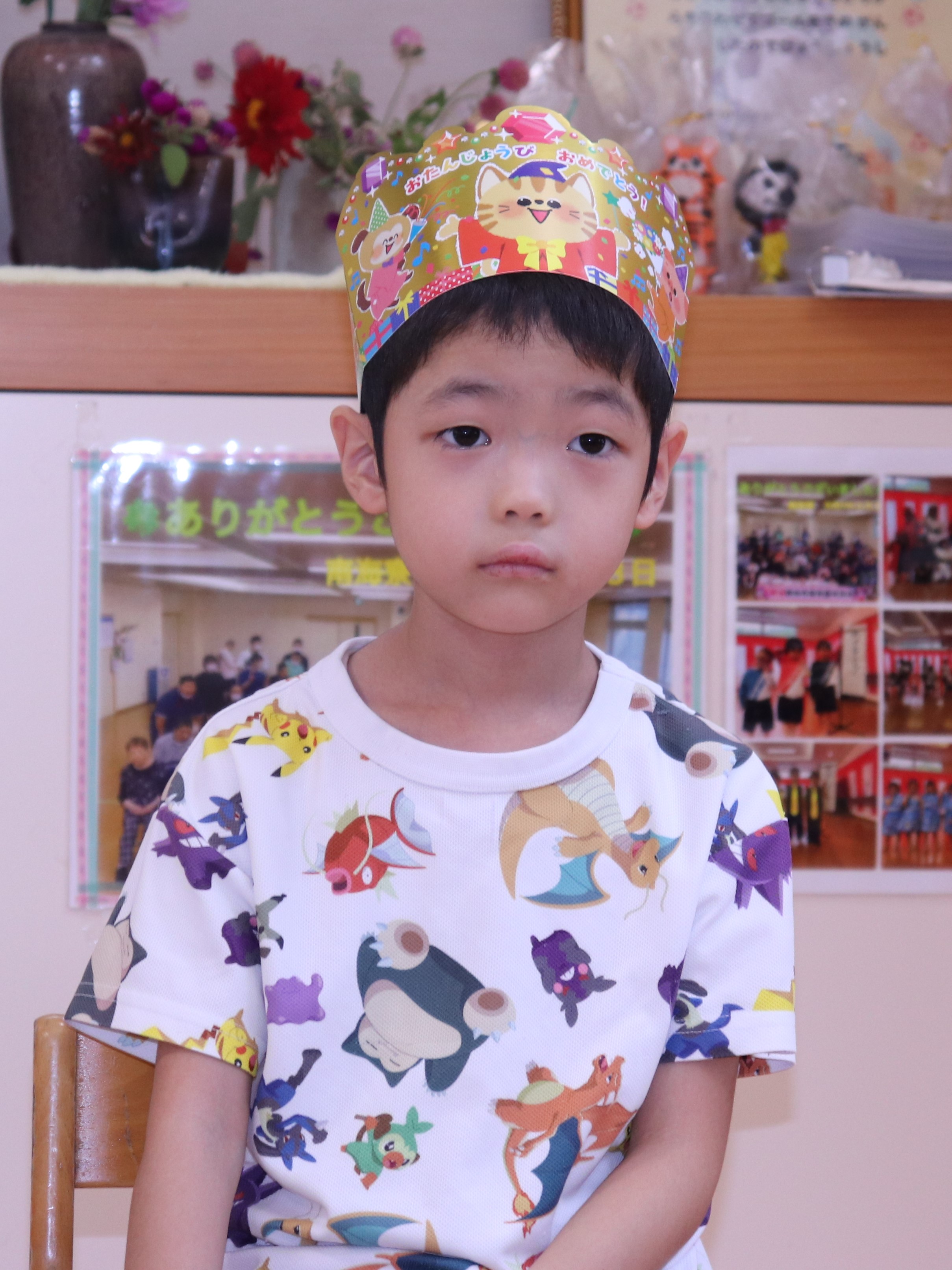 | 今日5月20日、5月生まれのお誕生会をしました。 5月生まれのお友だちお誕生日おめでとうございます♡ これからもお友だちと沢山遊んで、仲良く大きくなってくださいね。 | ||