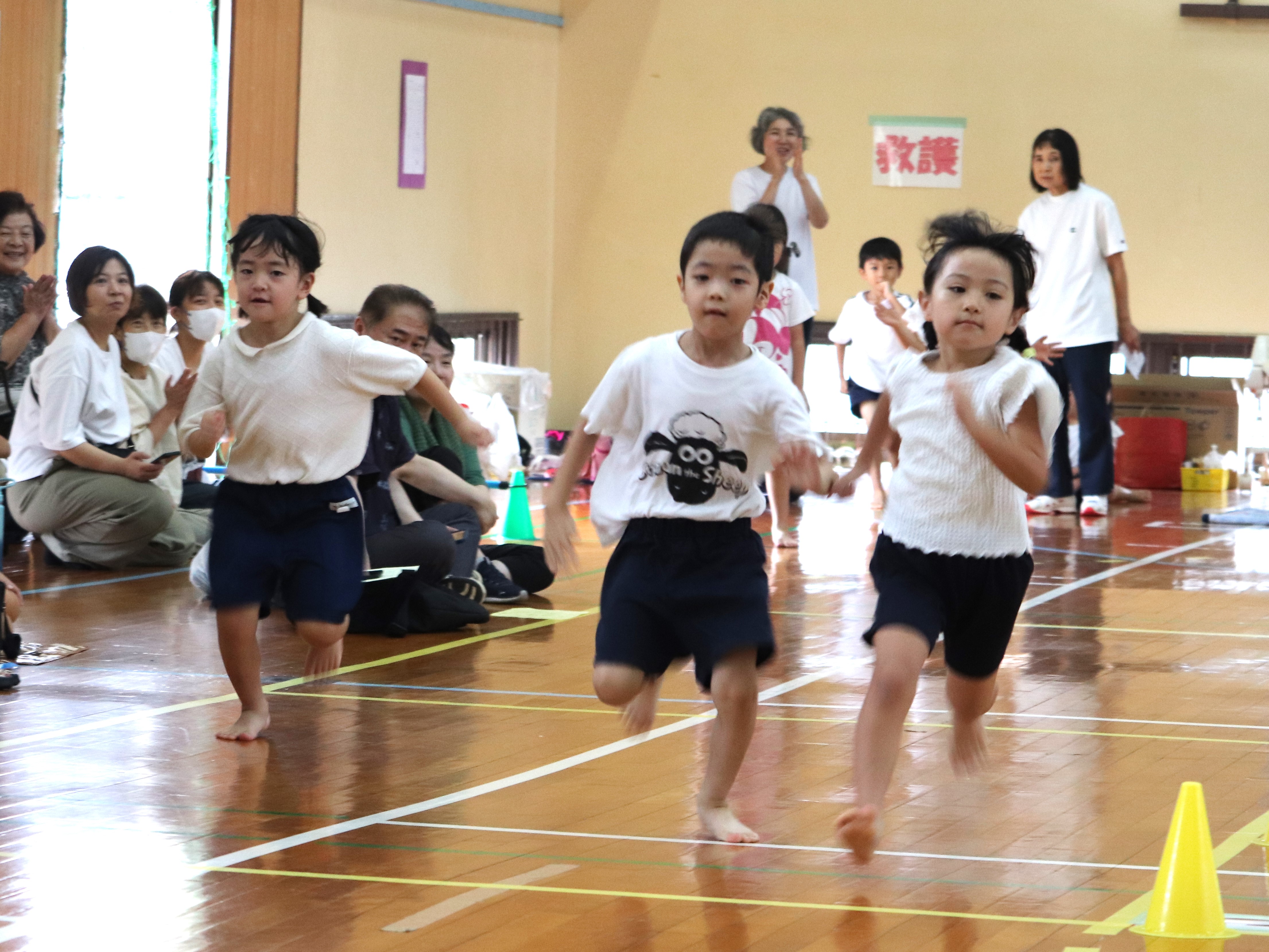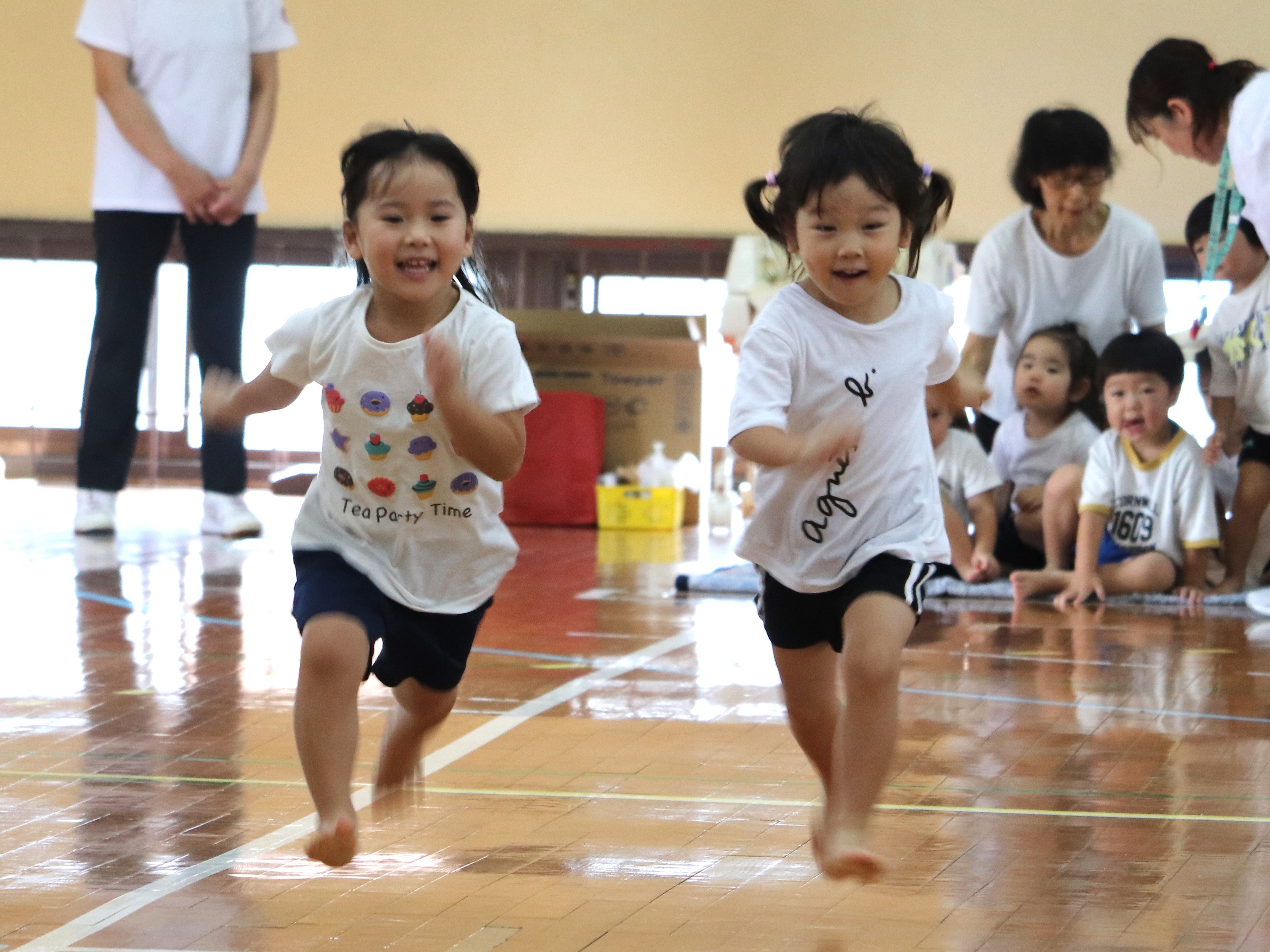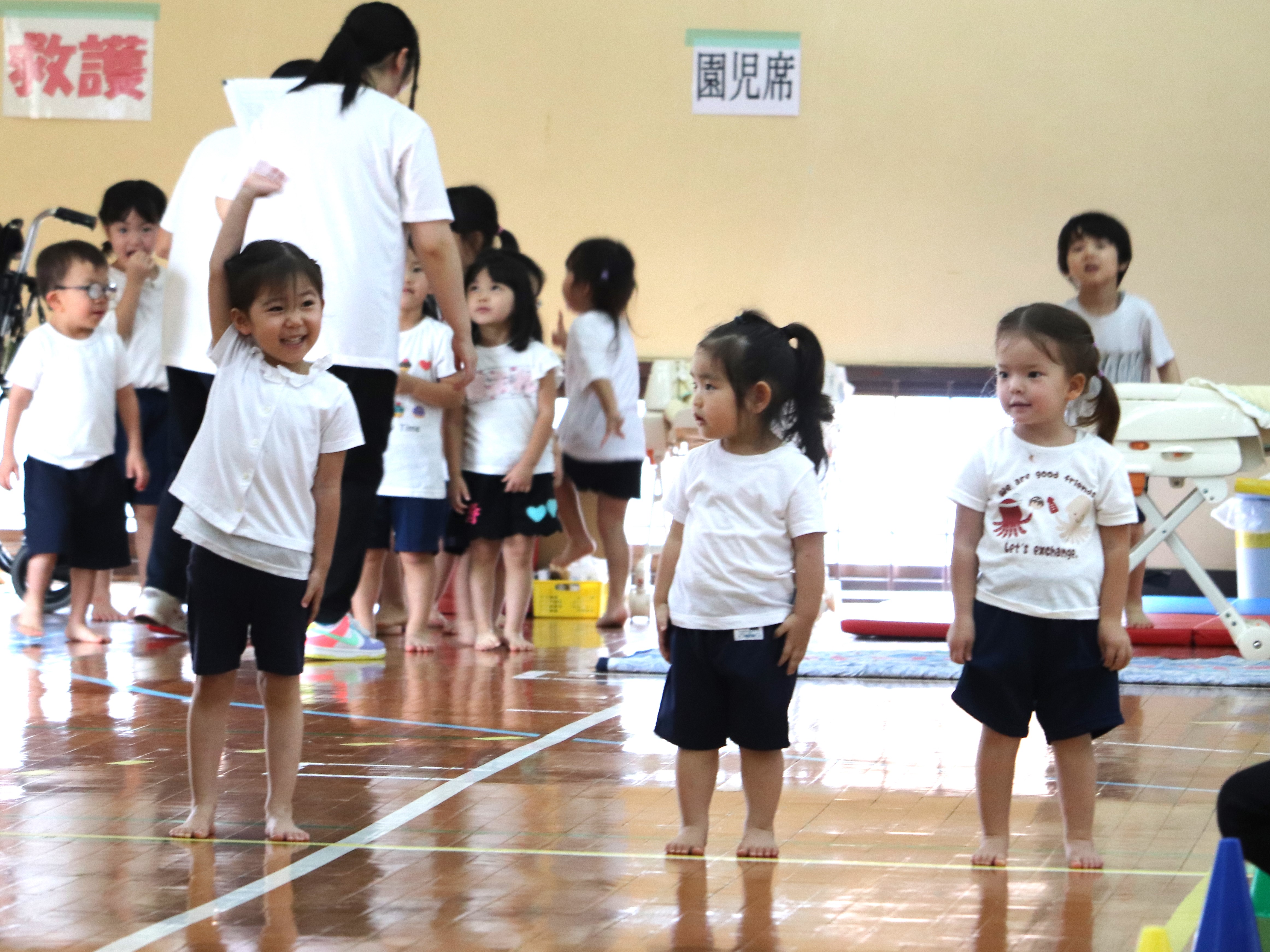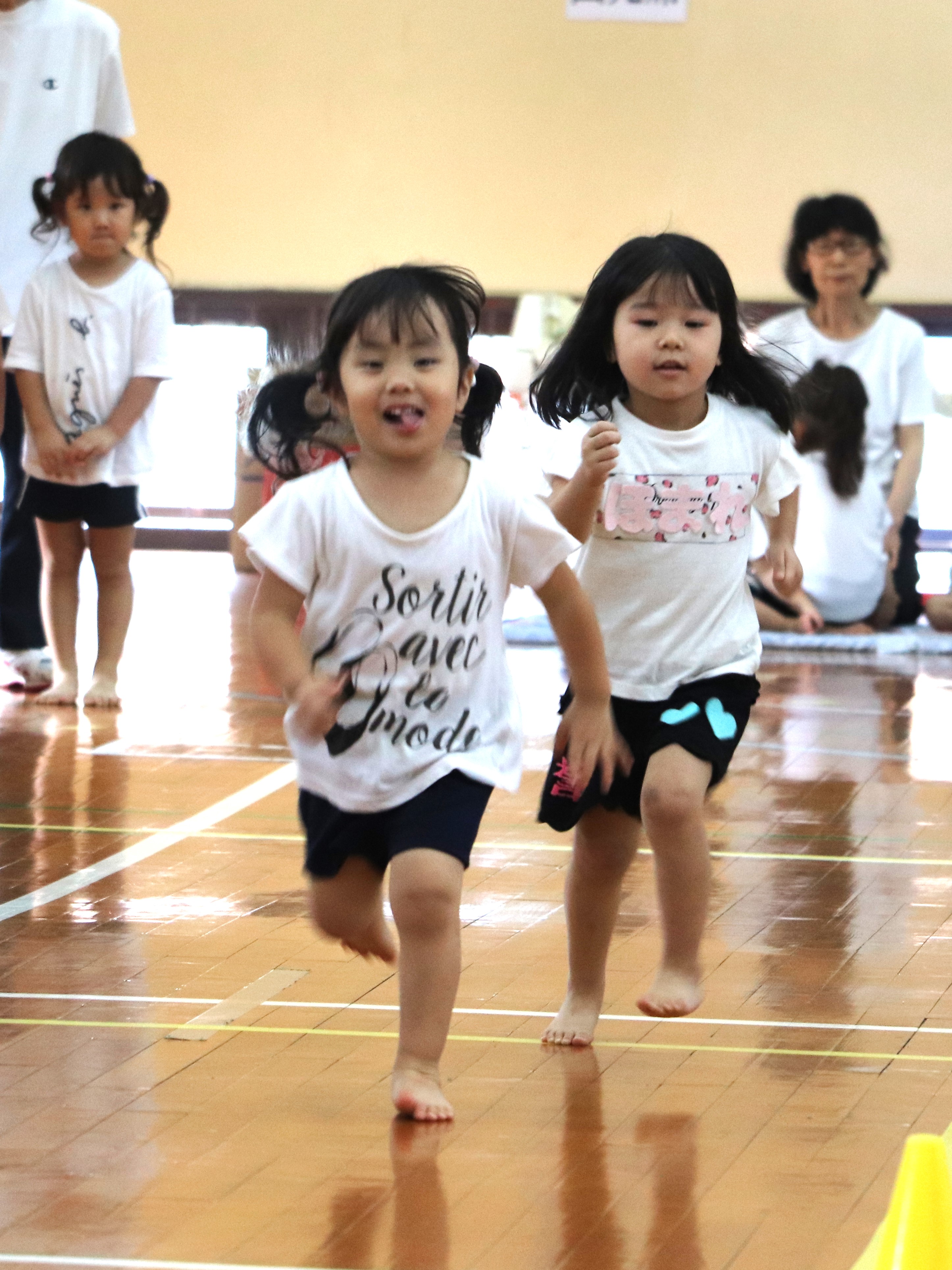 | 10月4日(土)運動ひろば(運動会)を行いました。保護者・来賓の皆様、沢山の声援をありがとうございました。おかげさまで園児たちは、最後まで諦めず一生懸命に競技することができました。 この日の為に園児たちは、練習を重ねて来ました。予行練習を見学し感心したことは、「指先までピーンと伸ばすと、もっとカッコイイ。」「前の人を良く見ていると真っ直ぐ行進できる。」 「挨拶や掛け声は、大きな声の方が会場の人に良く聞こえる。」「話を聞くときは、話している人を見ていると内容が良く分かる。」等のアドバイスを次には各人が意識し練習をしていたことです。 練習や本番では、運動ひろばテーマ『運動すると体も心も気持ちい』を体感し、笑顔だけでなく真剣な表情や負けたくない気持ち等成長した姿を沢山見せてくれました。運動ひろば(運動会)を経験し、達成感を体得したことでしょう!! これからの成長が、益々楽しみです。 |