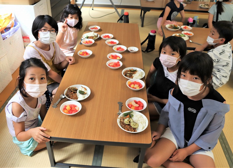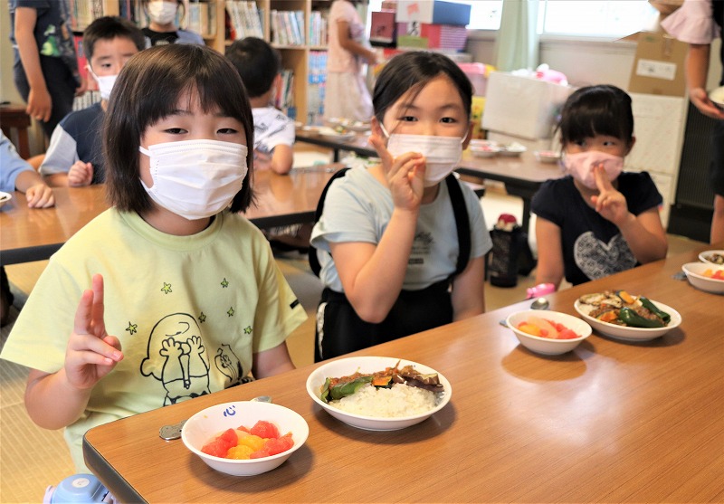 | 5月16日(火)は、4・5月生まれのお誕生会でした。誕生会メニューは『タコライス・鶏と野菜のスープ・カップのグラタン・人参ゼリー』 この日の一番人気は『グラタン』でおかわりもしていました。チーズ好きな子が多く、タコライスやグラタンの日は大喜びです!! 新型コロナウイルス症が感染症法の5類に引き下げられてから初の誕生会でした。誕生月の保護者の方も参加され給食を一緒に食べてくださり、子ども達は大変喜んでいました。今後も会食を実施する予定です。保護者の皆様、是非ご参加ください。 |