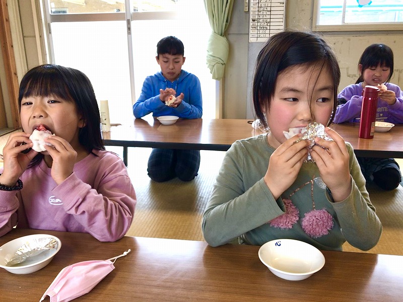 | 3月7日の給食は『お弁当』 4・5歳児さんは遠足先で、2・3歳児さんは保育園周辺をお散歩した後にお部屋で食べました。皆、朝からルンルンで空のお弁当箱を持って登園。4・5歳児さんは、自分でおにぎりを握りました。 同じおかずでも、お弁当箱に入っている、外で食べることでテンションも上がります。食欲が倍増し「美味しい~」の声が、たくさん聞こえました♡ 遠足の様子は、後ほどアップします。 |