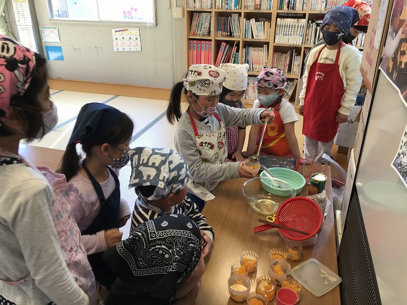 | 今日8月8日(月)、学童はドライカレーとフルーツポンチを作りました。 女の子チームと男の子チームに分かれての調理実習。男の子達は、初挑戦のみじん切りも手際よくこなし早くにカレーを作り上げ、全員分のフルーツポンチも作ってくれました。 夏野菜たっぷりのドライカレーは美味しく、おかわりをして全て食べ上げました。 |